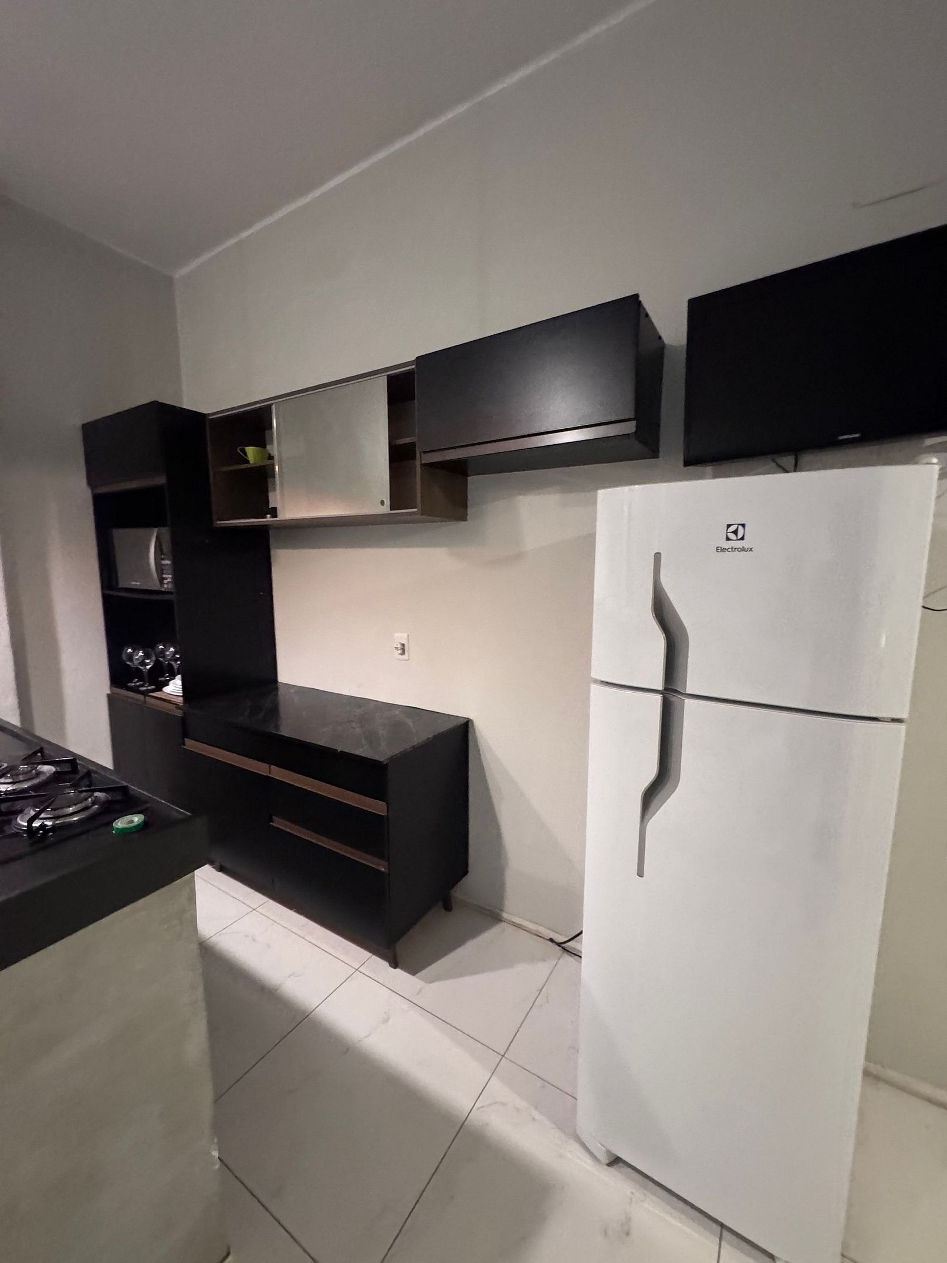 Cozinha ampla e completa: com todos os utensílios, geladeira e micro-ondas